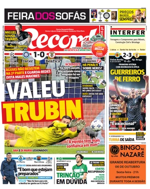 Inter Benfica, le prime pagine portoghesi: «Grazie Trubin, squadra addormentata» – FOTO