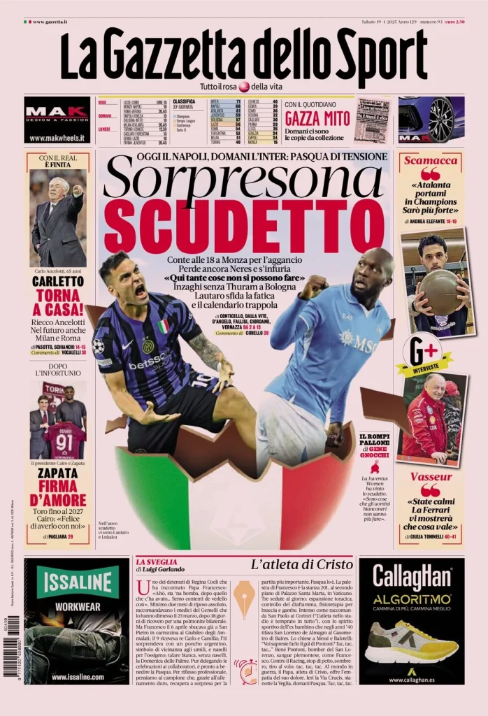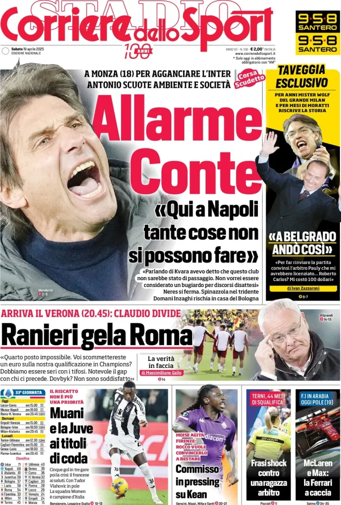 Le Prime Pagine Sportive Nazionali – 19 aprile
