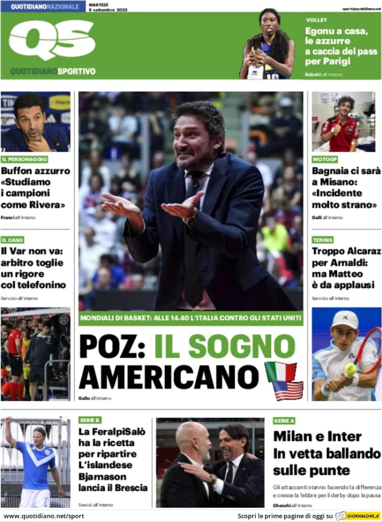 La rassegna stampa di oggi, 5 settembre, con le prime pagine sportive dei principali quotidiani nazionali: Gazzetta dello Sport, Corriere dello Sport, Tuttosport e Qs.